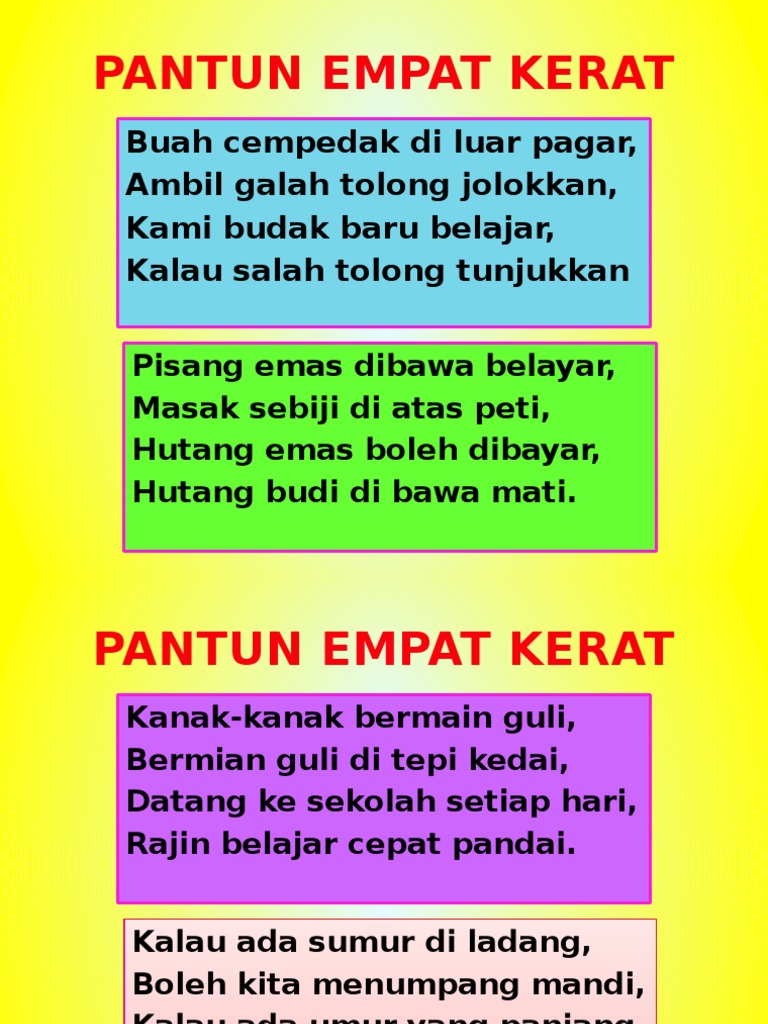 36 Nilai Pendidikan Moral Dan Definisi. Koleksi Pantun untuk Kanak-Kanak. Jenis pantun mengikut jumlah kerat-.